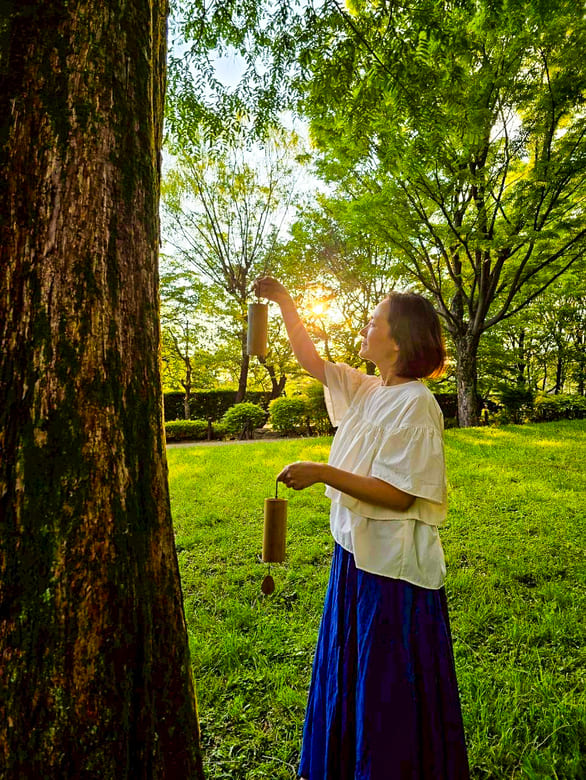 - 当日は、コシチャイムアーティスト(Rinrin)による演奏も行います。コシチャイムとは、フランスピレネー地方から生まれた、澄んだ美しい音を奏でる楽器です。